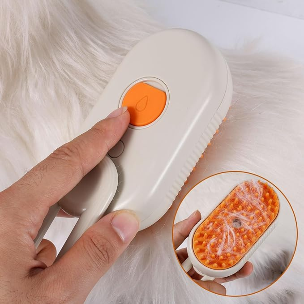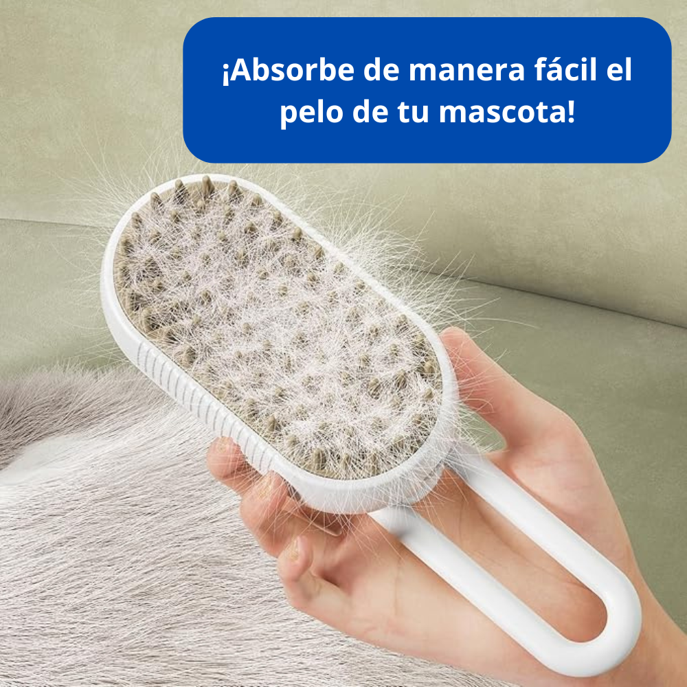 El diseño 3 en 1 del Cepillo VaporPet permite cepillar, masajear y limpiar a tu mascota, reduciendo la necesidad de baños frecuentes.