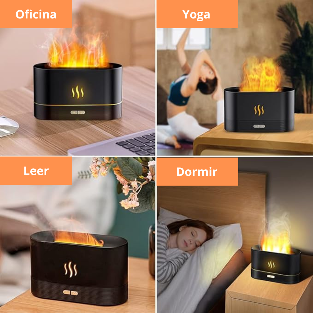 Con su efecto de llama realista, este difusor combina estética y funcionalidad.